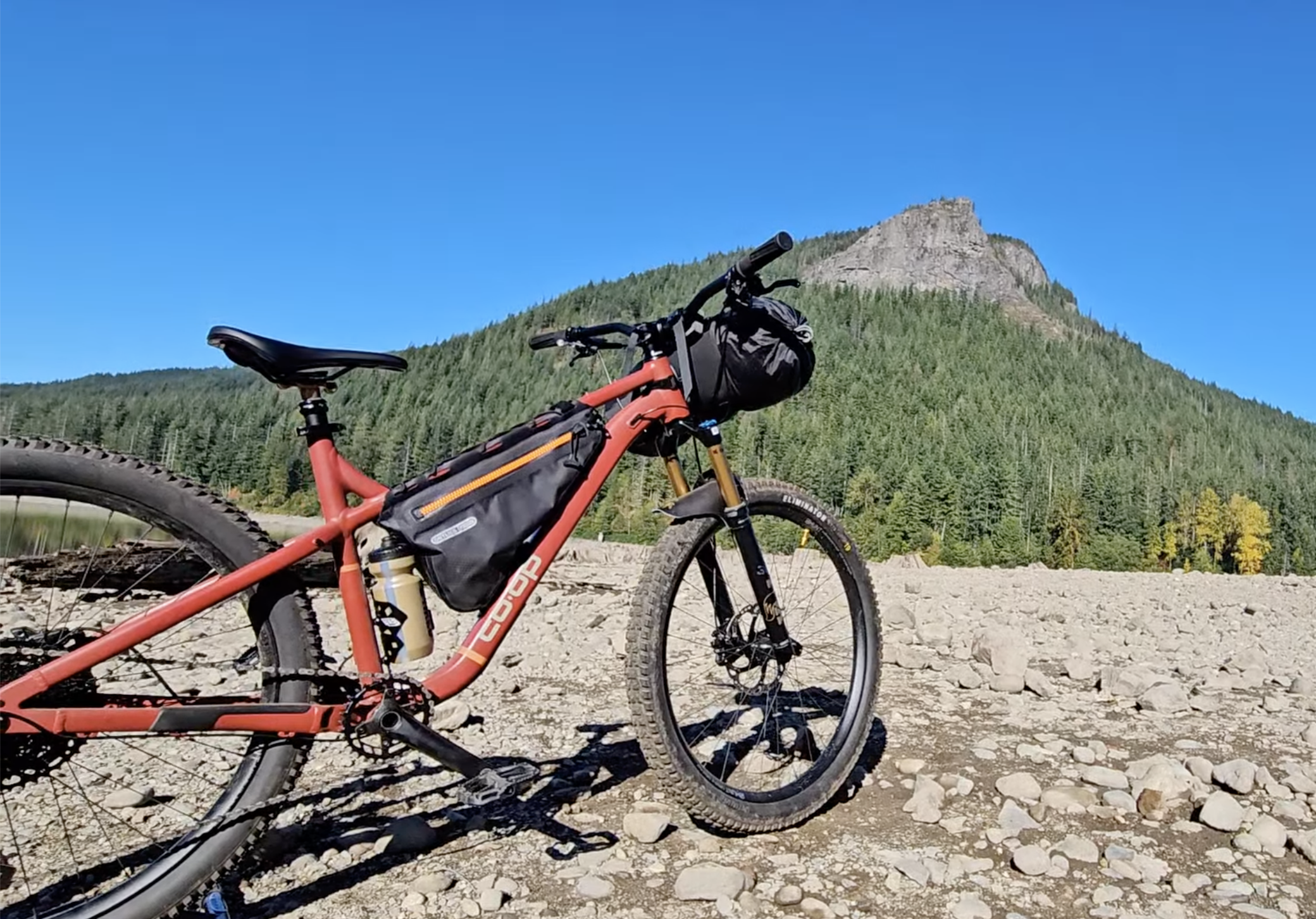 This Upgraded REI Coop DRT 1.2 has been an impressive addition to my stable. It can tackle some blue tech trails, has an built in mounting points for bike packing and a large triangle that perfectly fits a 6L Ortlieb Frame Bag.