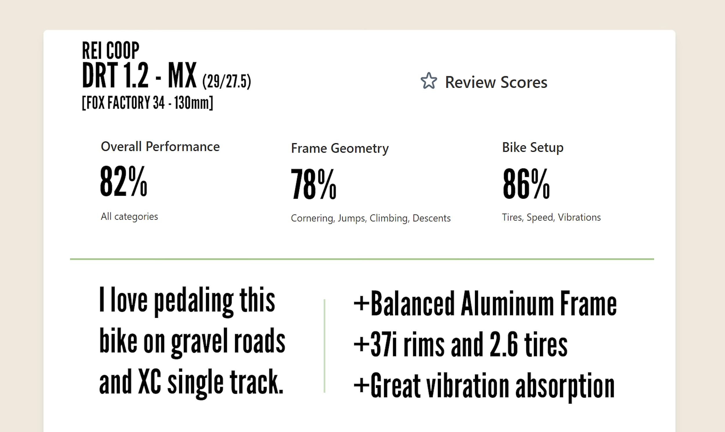 Our take was that it is a capable bike that is great at damping the trail.